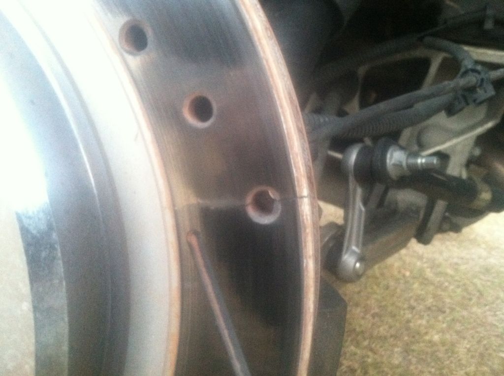 Emergency rotor swap...cracked both rear rotors. I knew better than to run drilled/slotted rotors on a track, but thought that surely they'd last one weekend. I was wrong. Basically brand new rotors that had to be thrown away.