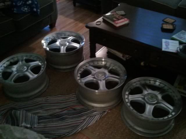 ![]() wire wheel ftw ![]() well i turned my power steering rack and pinion into a non power steering rack and pinion using my old wheel studs. here's a quick how to lol old wheel studs ![]() get four and cut the tips off like this ![]() place them into the holes and turn. they dont thread in much but it should be enough to hold them with some loctite or w/e ![]() where the rubber line was i plugged the holes with some silicone well my lug nuts finally came in today ![]() just gotta get outer tie rods and i can set the car on the ground for the first time in more than a year and give it a wash lol almost done laying filler in the bay. hopefully one more coat followed by a very very light coat ![]() well. the car has touched the ground for the first time in over a year ![]() i didnt take the time to mess with the suspension much. just set it down. the front need work clearly lol, plus no weight on them ![]() for me personally, i think i nailed it ![]() one thing is the driver side rear tire seems to be losing air. im guessing its the old seals on the valve stems. gotta get that fixed before the car goes off for paint |
