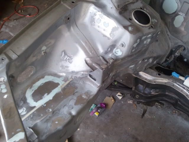 here's a pic of laying some body filler in the bay