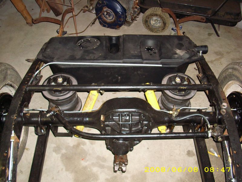 What kind of bags are you using? What's that plan for laying out the back? 4 link or something with the leaf springs? |