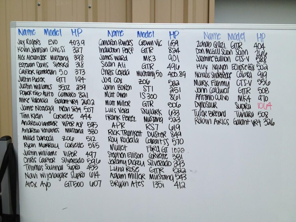 The dyno day for TX2K14 will once again be at Lonestar Motorsports Park (www.lonestarmotorsportspark.com) The dyno day event will be a little different than years past. Over the last 2 years we've seen a higher number of low whp cars take up the dyno's. In an effort to put on a show, this year, we are implementing a new rule/strategy. There will still be 2 dyno's that will be going at the same time (one is an AWD dyno and one is a standard dynojet), Anna Costas will hold the dyno list...sponsors will get priority for dyno time. However, if your car makes LESS than 425 whp SAE corrected (dynojet) and 425 awhp corrected (using the awd dyno), you will be charged $50 for 3 pulls. That means if you make 424.99 whp you are paying $50. Any money collected from those that failed to meet the minimum threshold will be paid out to the "highest whp" winner at the end of the day. If you make over 425 whp, there will be no charge to dyno, as always, it'll be free. Aside from sponsors, first come first serve to dyno.