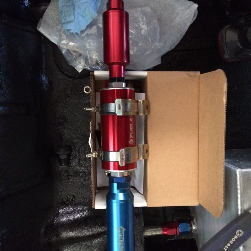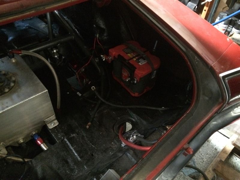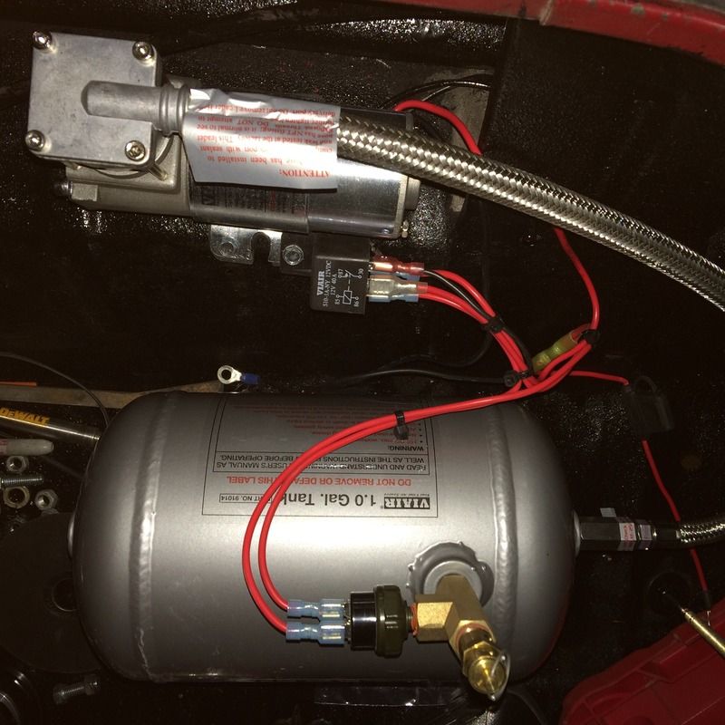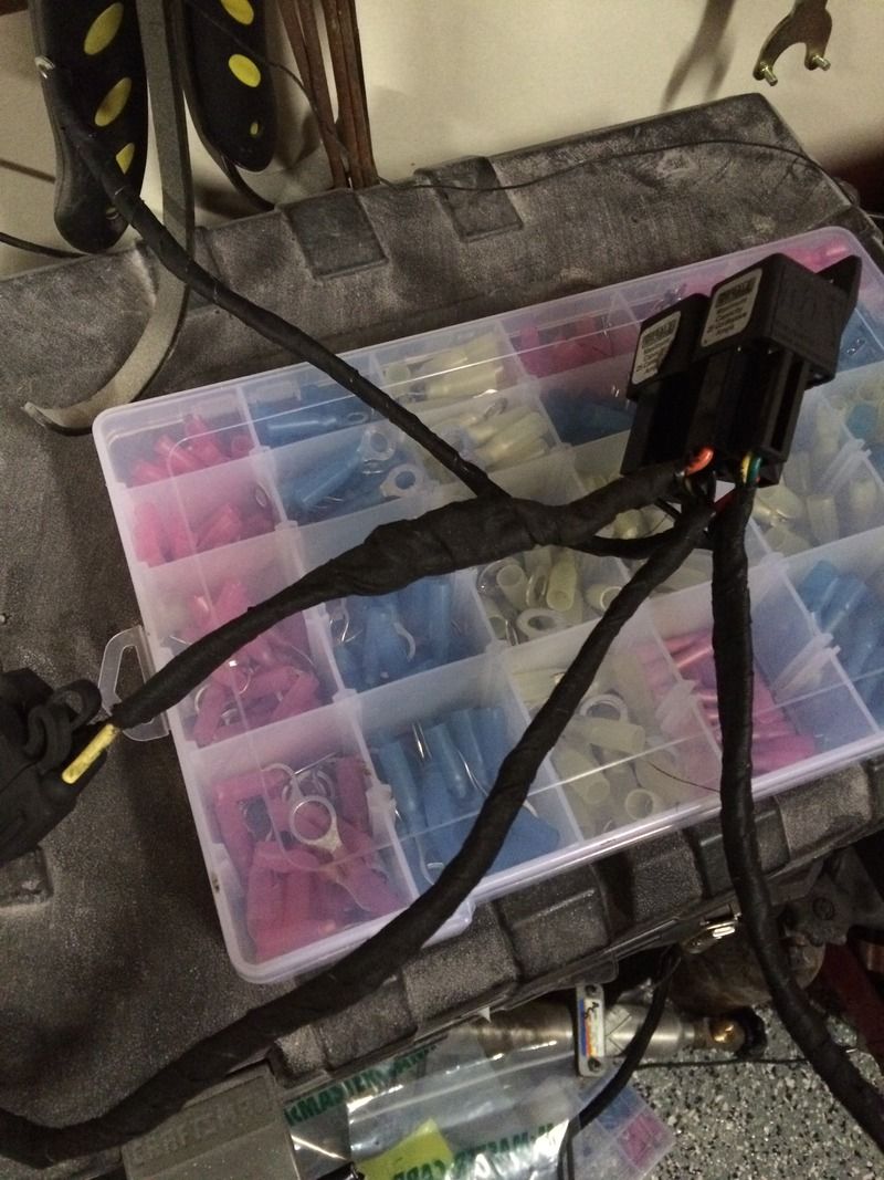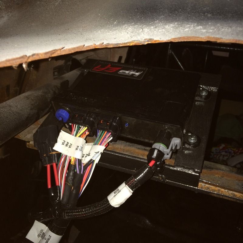 I got the brakes bled, which I thought was going to be a nightmare but there are no leaks! I have all AN stainless lines. I used the Eastwood vice flaring tool. I also welded in a new bung for the Holley wideband. Which was indeed a nightmare. During my welding I had a plug in there to not distort the bung. Well, there were several distractions and I didn't move the plug after each weld and it ended up screwing up several of the bottom threads. Luckily the wideband doesn't use them and it was a big bitch to get it out. I ran a thread chaser down it and all is well now. I cleaned up some of the wiring and put caps on wires that I won't be using immediately. I cut out a portion of the motor plate for my alternator and need to mount that still as well as fab up a tensioner and idler pulley setup.