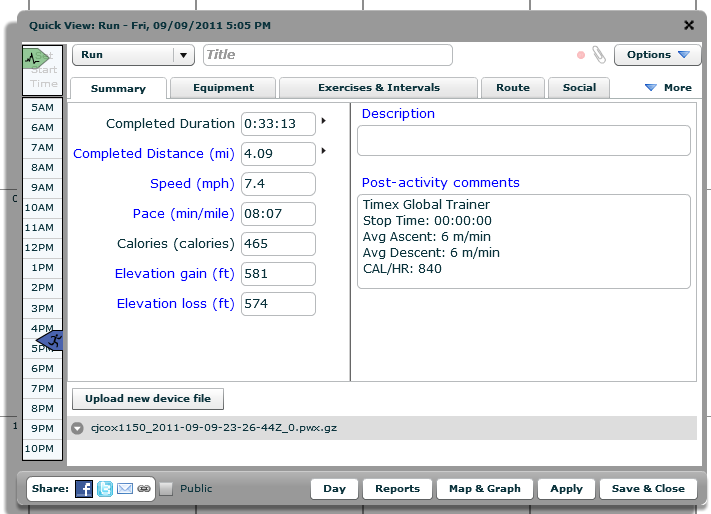 I'm not the fastest but I was happy with the cool weather today. The thing I'm impressed with was the peak pace was the last 0.18 miles racing my friend to the finish. I use a program called endomondo on my android phone to track runs.
