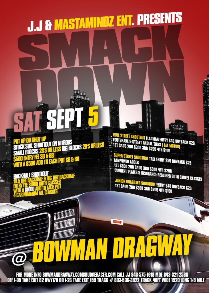 ![]() EVERY CLASS IS OUTLAW CALLING ALL GRUDGERACER:FLA. BOYZ,HARWELL/STREET KINGZ,SHUT'EM DOWN,HOODLUM,CAMP 5/DOG,PRIMETIME,HONEYMAN,K-9,XTREME,634 BOYZ SOULJA BOY,GRAY EYES,LARUSO,RUFUS,JOE SULIVAN,BRIAN MCGEE,COUPE DEAN,BUMBLE BEE,BOOGLEMAN,BIG SEXY,KOC MOTORSPORT,LIL FLIP, MCFADDEN,KILLIN TIME,JASON BLACK,C.TUTEN,FULL MOON,MUSTANG PERF. ECT. ALL GRUDGERACERS WELCOME FROM STREET CARS TO TRACK CARS THANKS JJ & MAURICE