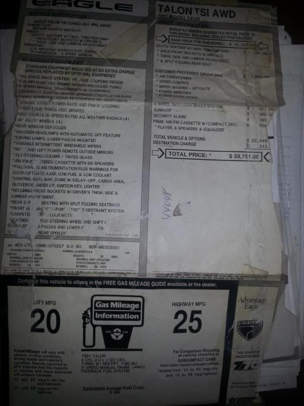 Picked this up yesterday. 91 Eagle Talon TSi AWD. Bought it from the original owner. Only has 92k miles on it. He shed a few tears after selling it and understandably so after owning it for 22 years. Probably one of the cleanest 1G Talons you will see these days.