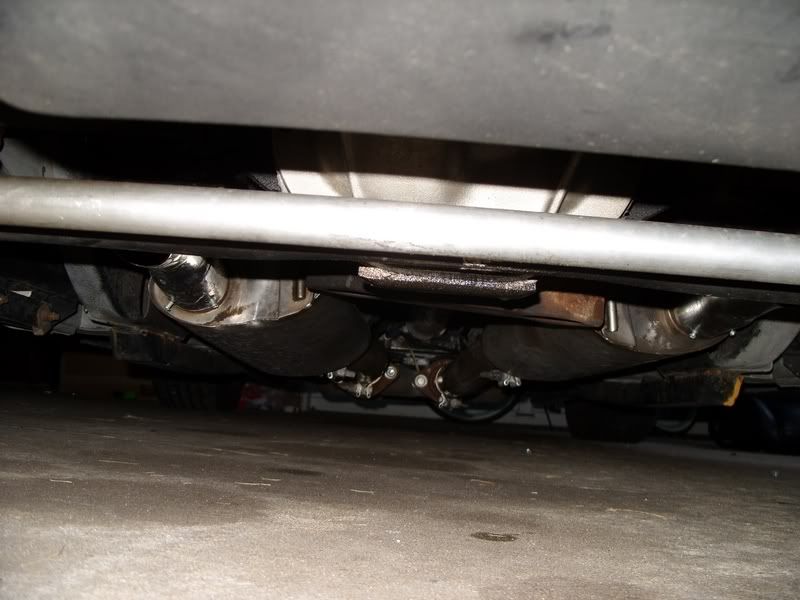 here is a hard to see picture which shows the new steeda catback which is dumped b/c of the panhard bar, which is the silver bar you see running even with the axle (for those that dont know).