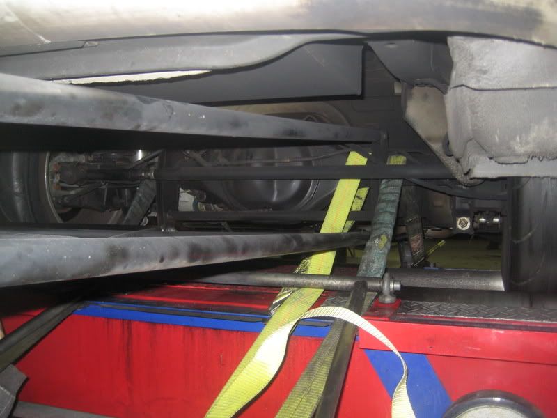 damn, looks like yout guys need to learn how to strap a car down, you should have had at least 4 on the back and 2 on the front