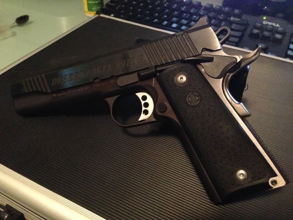 Nice choice on the Hogue rubber grips. Those Hogue rubber grip panels for the 1911 give a unique grippy feel that you can't get with hard grip panels.