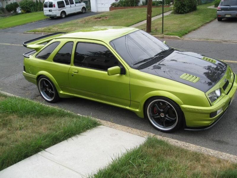 I'm not big on all the glass, but thats the way it was made, cant do much about it. At least there are no blind spots. The wing is part of the Cosworth look. Once the car is painted, it will probably look much better. With the multicolor, it looks out of place right now. Heres a buddy of mines car, and with it all one color, with the exception on the carbon fiber hood, it looks like it belongs: