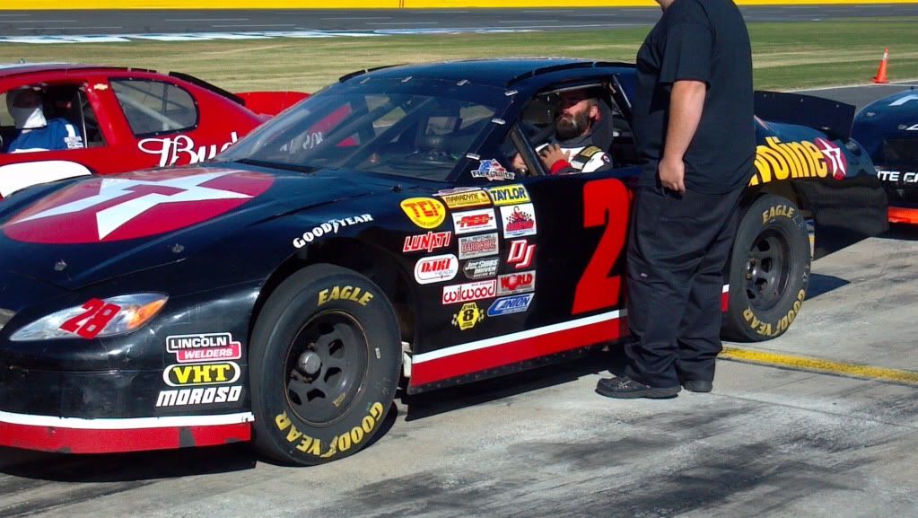 All in all I really enjoyed it. I felt as if the cars needed more hp, although they were running "500hp". They used 504 crate motors that had been previously raced in dirt cars. There was enough power there to get you around the track at "150mph", but left me begging for more. I think with a good set of tires i could have never let off. But it was fast enough to scare the crap out of someone with no experience. The cars themselves had a little weathering on them as well. A few were ARCA, Busch, and nascar cars. If you know anything about the sport, chassis' usually get passed down the line for smaller support series. So there was a little history with these cars. I also didnt feel like my car was really set up for Charlotte. Looked to have a short track set-up on the car with a high ride height in the front in preparation of planting the front end on corner entry. The tires were fairly worn as well. We were the first class of the day, so the tires were cold and the sun had yet to hit turns 1 and 2. Turn 1 finally dried up and they let us head out. They said to use your own discretion in turn 2 bc there may still be a little dew on the track and there was no heat in the surface. A few pictures: ![]() ![]() Talking with a guy from Florida who had done the RWE 15 times now. He was doing something like 80 laps that day. ![]() Notice the ride height on the car. ![]() Making D. Allison proud ![]() ![]() Video is a little repetitive, but I was never passed. Not even by the ride along guys with their drivers in them. You will see a blue 24 car exit pit road on the back stretch on the first lap up to speed. There is also cones in the corner entry which they suggest you let off and brake and mid corner to pick the gas back up. I didnt pay those no attention and didnt touch the brake. Enjoy http://www.youtube.com/watch?v=B1LJuN8cRYo