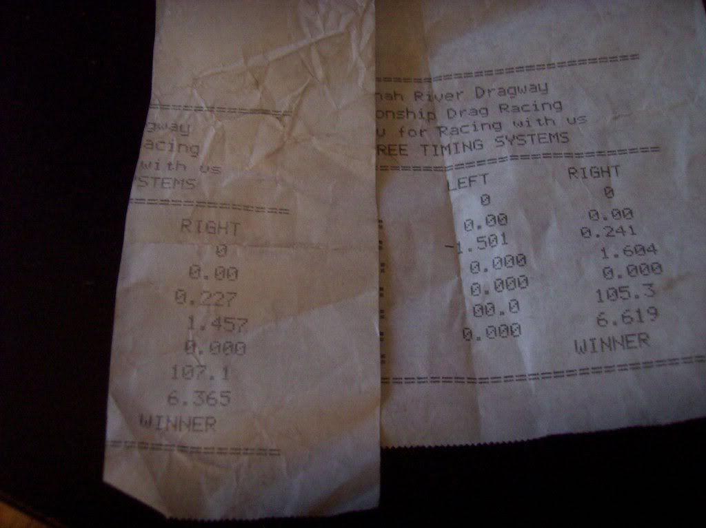 We did get to run the car on the bottle. I was going to wait untill after I raced Paul to post it up but oh well. We did find out we are going to need another converter. The slower time is with a 200 shot and the faster time is with a 150 shot. It was just blowing through the converter. Making it slip to mutch. even with the 150 shot it was doing it preaty bad. if you look at the mph it was way slow for the E.T. But once we get another converter I dont think 5's will be a problem.