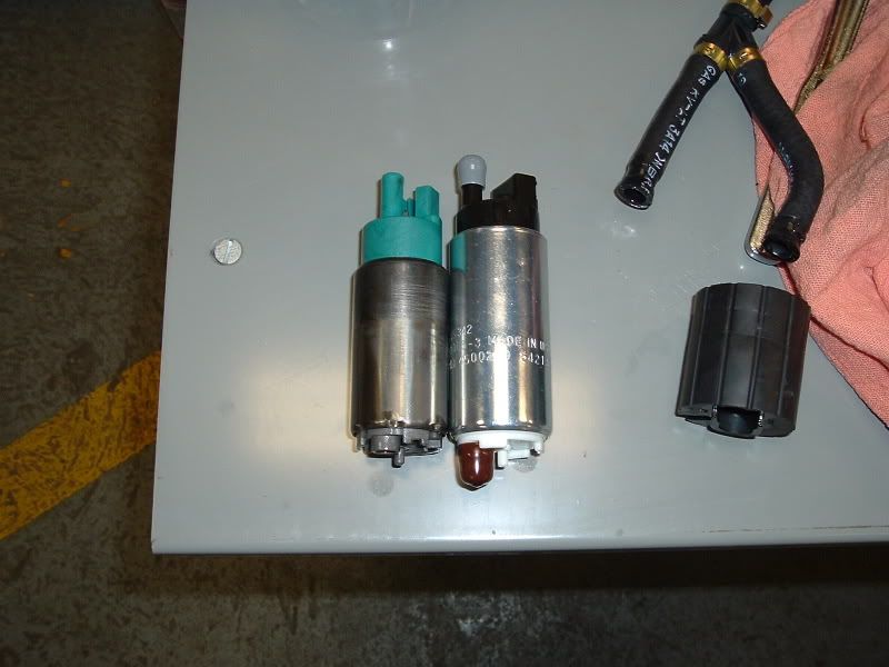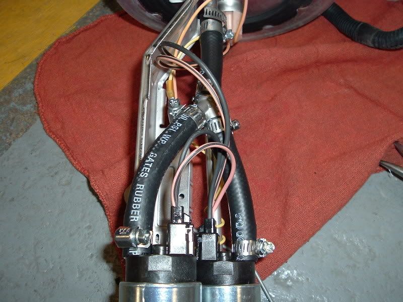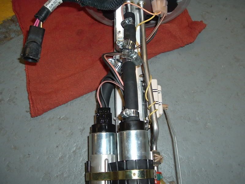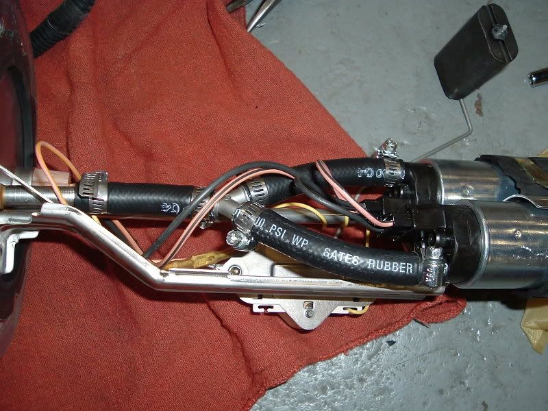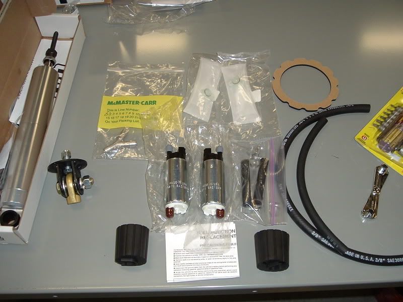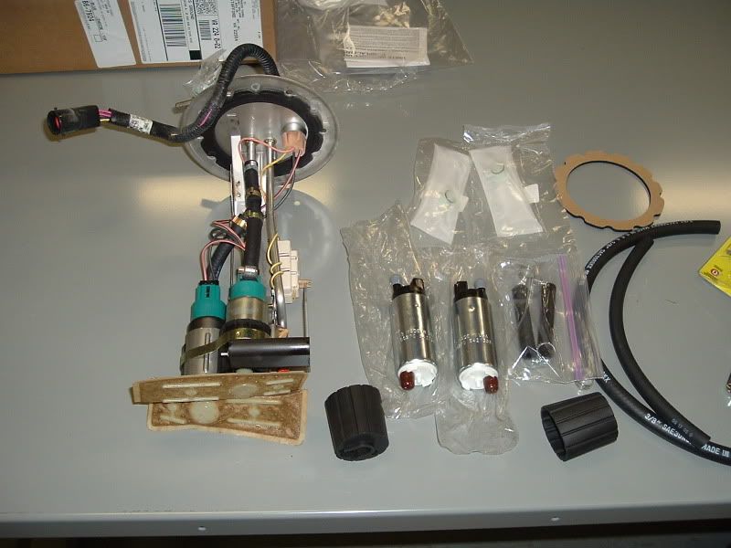 Here is a pic of the kit I got from LFP... Minus the QA1's of course. ![]() ![]() We decided to remove the bed to do this because we did the QA1's at the same time. This was pretty easy considering we had a crane to work with. All we had to do was remove the 3 screws inside the fuel door that hold the filler neck in the bed and disconnect the plug for the tail lights that was located at the left rear of the frame. We also found out that we had to pop out the license plate lights. We also had to remove the 6 bed bolts of course. ![]() ![]() ![]() ![]() Next we located the fuel tank and where the lid was that contained the fuel pump assembly. ![]() Then we removed the fuel lines and wrapped them with rags and unplugged the power source. ![]() ![]() Then we removed the 6 screws that hold the assembly in the tank and removed the assembly. It was a little tricky, but it came right out. ![]() ![]() ![]() ![]() ![]() Then we went to changing everything over. Sorry, I got a little involved and didn't take any pics of the change over. ![]() Here is a comparison shot of one of the old (blue) pumps and one of the new ones. ![]() This is a shot of the SS Y-Fitting I used instead of the factory plastic one. ![]() ![]() And here is everything put back together. We decided to reuse the factory tank seal. It was in excellent condition and was stuck on there pretty good. ![]() ![]() ![]() ![]() Here's a shot of the hose you want to use. Other hoses aren't designed for use with in-tank applications and the fuel will degrade the rubber and cause it to bulge. In some cases, hoses have blown from the degradation. This hose is 30R10 rated which is the specification for submersible fuel hose... ![]() If anyone has any questions, please PM me and I will do my best to help you. |