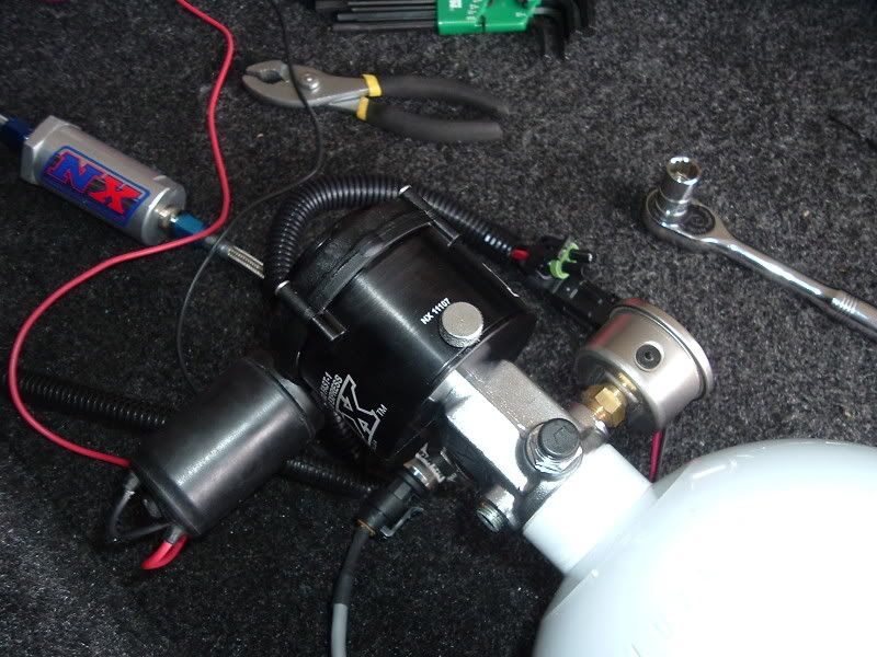 That's pretty much it for the install. All I had left to do was connect the weatherpack connectors and close the bottle with my switch. I held the switch to the closed position for 2 seconds like the instructions said and then went back to remove the D-4 cap from the valve nipple. I did this slowly just in case the valve wasn't closed all the way I wouldn't get extremely cold nitrous sprayed on my fingers. Everything checked out and I reinstalled the feed hose onto the valve nipple.
