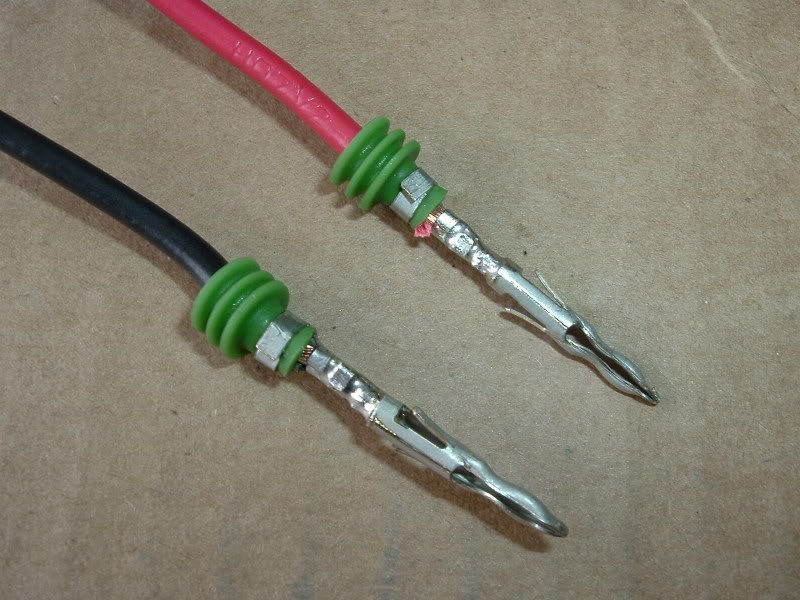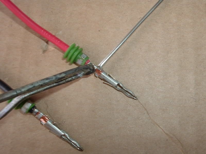 Then I installed the Molex Pins that come with the weatherpack connector. There is a special crimping tool designed specifically for Molex Pins, but I decided to use a small pair of needle nose pliars to do the job. I soldered the connections anyway so a tight crimp wasn't important.