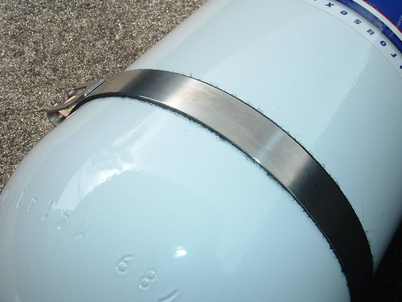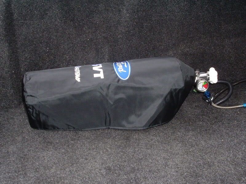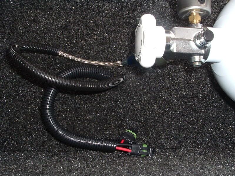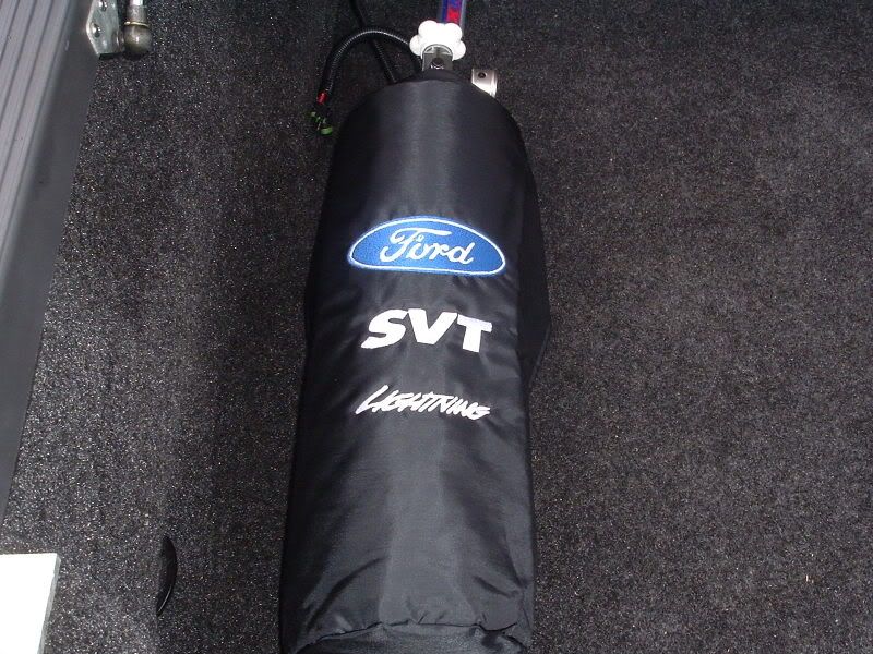 I finally got around to plumbing the purge tubing. I decided to drill a small hole in the firewall behind the loom cover. I put a gromet in the hole with a hole in it the same size as the tubing so it fits nice and tight. I also got my custom bottle cover from Kellie Francis. If anyone likes the bottle cover and wants one, they make them in all different colors and have a bunch of different designs that they can embroider on them. Mine cost $31 shipped. The 10lb bottle covers are cheaper. Her email address is WINTE91@MSN.COM