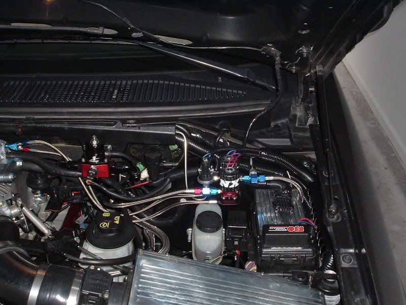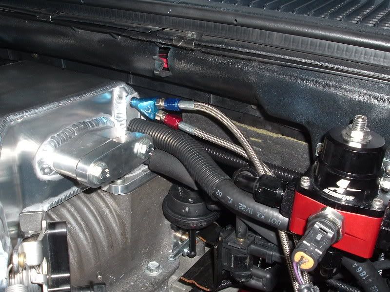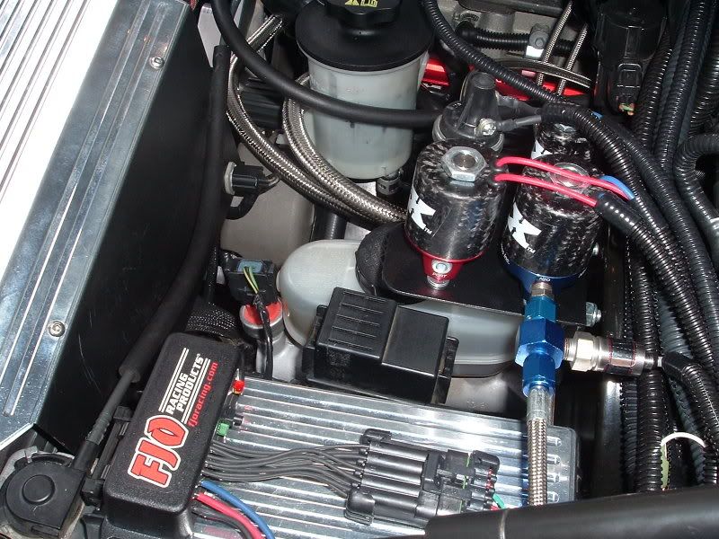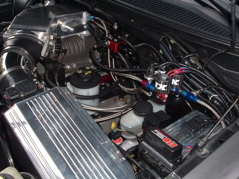 Here's some pics of what I started out with... ![]() ![]() ![]() ![]() ![]() ![]() ![]() ![]() ![]() ![]() ![]() I bought some extra relays to use for the purge and the pressure controller when I get it... ![]() I have to thank Billy (04 Red Apple) for helping me out every step of the way on this project. He gave me all the info I could ask for and made me these brackets for the solenoids and for mounting the bottle brackets in the bed... ![]() This is the adapter bracket Billy made me to attach to the solenoid bracket so I could mount it to the master cylinder bolts. It fit perfect... ![]() After I drilled the holes for the solenoids and attached them together, I painted them black... ![]() ![]() Here's where I decided to mount the gauge and the switch center... ![]() I also bought some of these from McMaster-Carr to use for the connections in the bed for the bottle opener and the pressure controller... ![]() Billy also hooked me up with a section of wiring tray so I could make the install a little neater. I bought some L-Brackets from Lowes and modified them to use with the tray... ![]() ![]() ![]() I used this Earls 90 degree swivel fitting to tap into the Aeromotive distibution block for the fuel... ![]() And here's the bottle opener, but I don't think it's the right one because it doesn't fit right... ![]() And here's a bunch of pics of the set-up... ![]() ![]() ![]() ![]() ![]() ![]() ![]() ![]() ![]() ![]() ![]() ![]() Here's where I ran the grounds for the relays and the controller. And also where I tapped the power from... ![]() ![]() ![]() And here's where I tapped into the TPS signal wire for a WOT signal for the controller. I also tapped into a coil wire for the RPM signal. I tried to make it looks as neat as I could... ![]() ![]() Some bed shots... ![]() ![]() Here's the bottle pad I got from Race Tested. It looks good and it'll keep the bottle from getting scratched up during re-fills. ![]() I put some velcro strips on the inside of the bottle brackets to keep them from scratching the bottle... ![]() And here are my weathertite connectors waiting for the bottle opener and the pressure controller... ![]() Here's where I relocated my switches for the IC and the E-Fan since I put the switch center where they use to be. I have since hidden the wires. ![]() That's about it. It's jetted for a 75 shot right now, but I may move up to a 100 shot later down the road. Sorry I didn't do a How-To on this, but if anyone has any questions about the install or needs any part #'s let me know. If anyone has any suggestions or ideas to help me better this set-up, I'm all ears... |