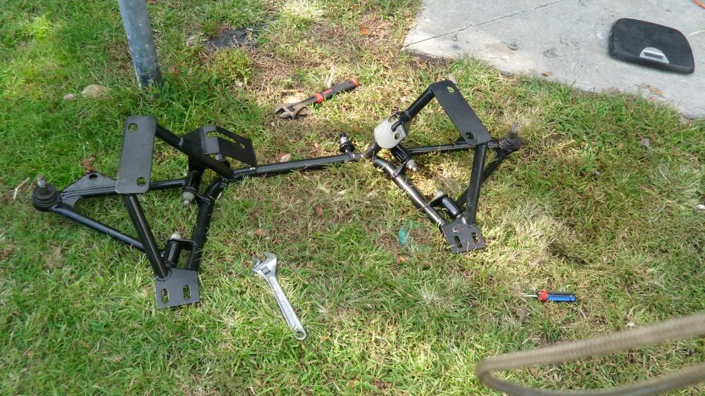 Finnally scraped up all the parts together to do some suspension work on the slowbra. Finished the front up, hopefully will finish the rear before saturday and maybe hit the dyno. Ended up being about 100lbs off the front end, probably 150 off the rear.